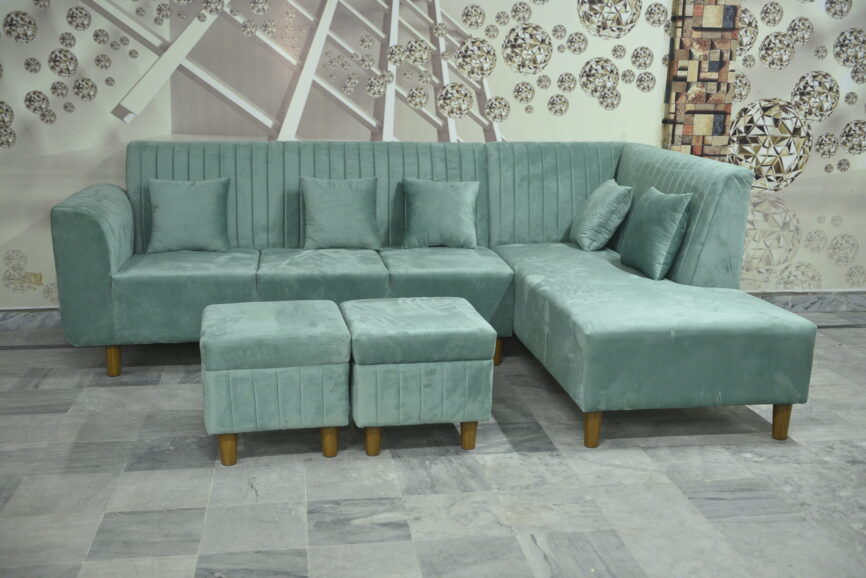Modern 7 Seater Luxury L Shape Sofa With Stools